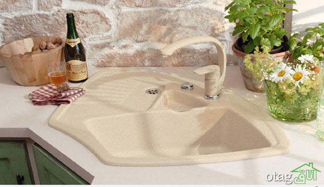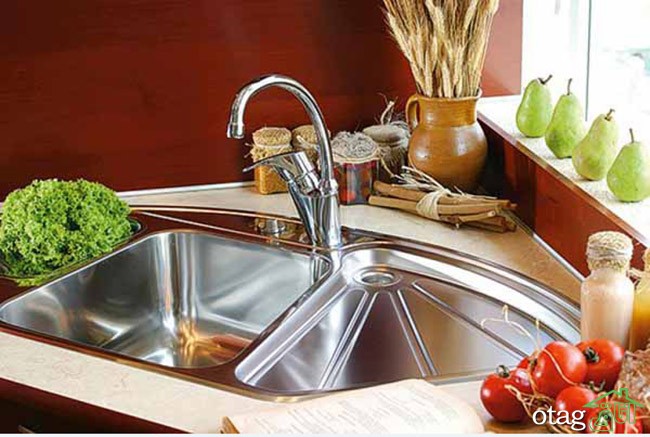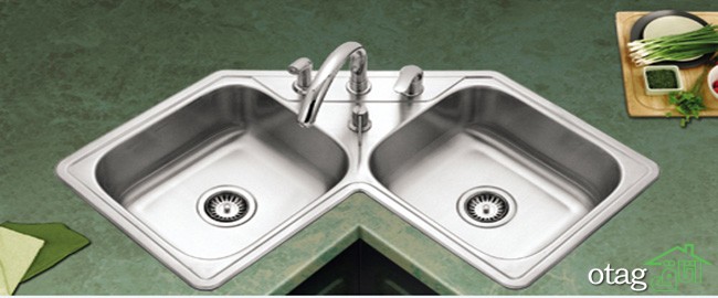 اما برای آشپزخانه های کوچک گزینه دیگری هم پیش رویتان قرار می گیرد و آن سینک های طراحی شده برای کنج آشپزخانه است. در آشپزخانه کوچک باید از سانت سانت فضا استفاده حداکثری را ببرید. معمولا گوشه ها در آشپزخانه بلا استفاده باقی می مانند در حالی که با نصب یک سینک ظرفشویی در کنار صرفه جویی در فضا، ظاهری متفاوت و خاص به دکوراسیون آشپزخانه می دهید.