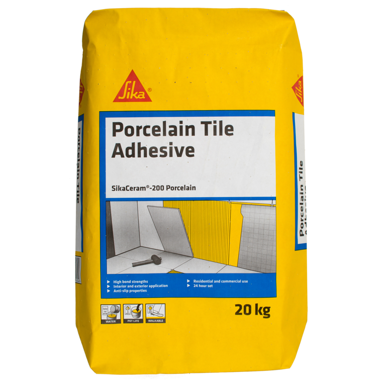 چسب های معمولی برای چسباندن کاشی های پرسلان مناسب نیستند و برای نصب این کاشی ها باید از چسب های پودری پرسلان استفاده کرد که چسبندگی بالا دارند و در برابر نفوذ رطوبت و تغییرات دمایی مقاومت بالایی دارند.