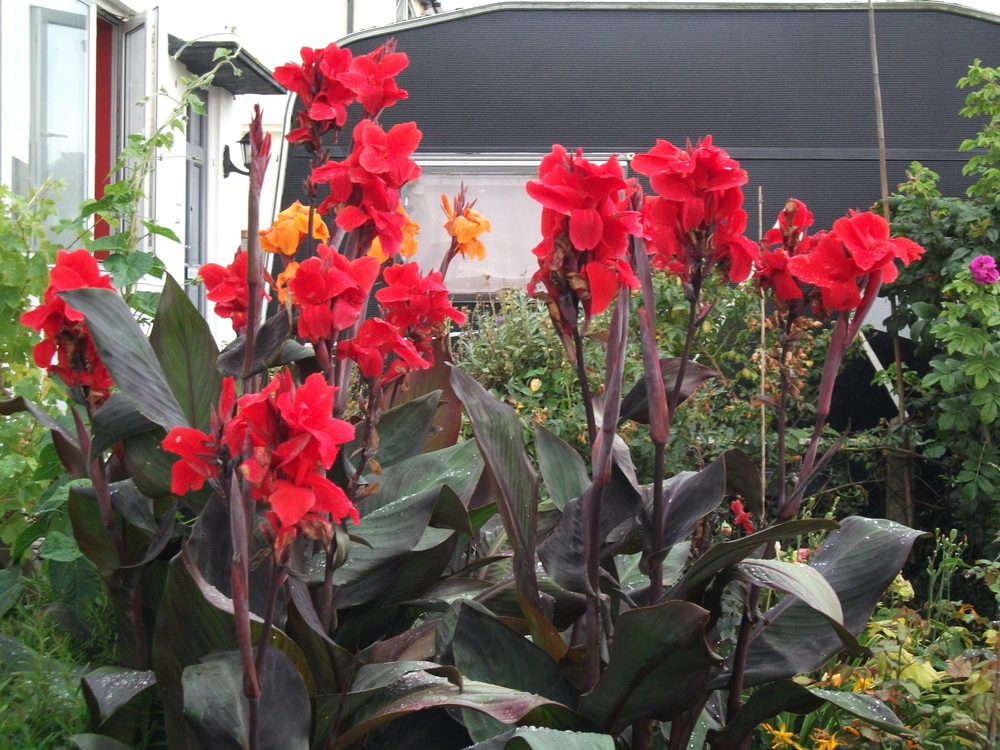 گیاه دائمی و ریزوم دار به بلندی ۸/۱ متر و گستردگی ۵۰ سانتی متر دارای برگ های ارغوانی مایل به قهوه ای بوده ، گل های آن مشابه گلایل و به رنگ نارنجی مایل به قرمز در اواسط تابستان تا پائیز ظاهر می شوند.